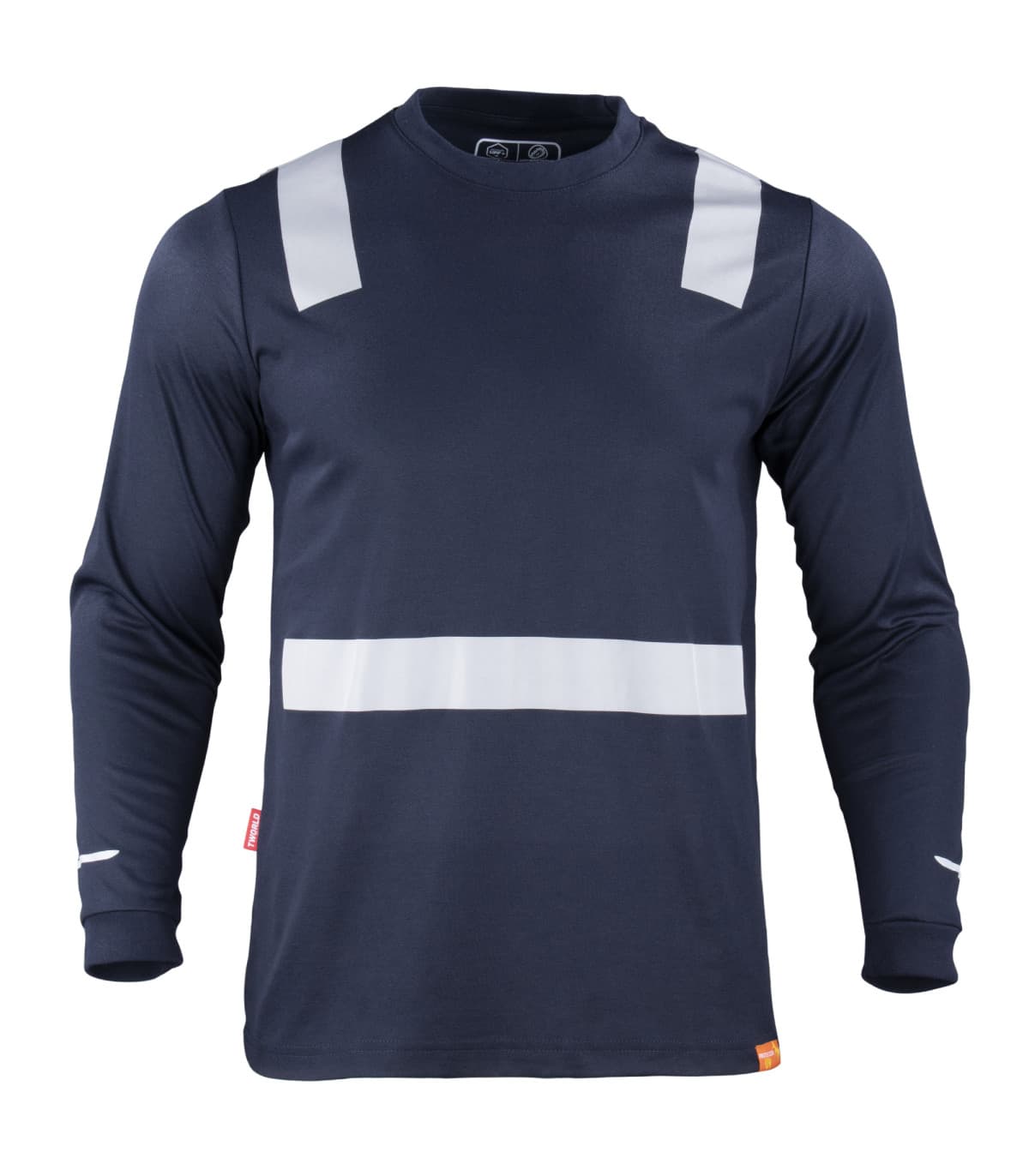 Visibilidad y confort para el trabajo diario. Esta polera reflectiva híbrida de manga larga combina materiales resistentes con diseño funcional para entornos exigentes.